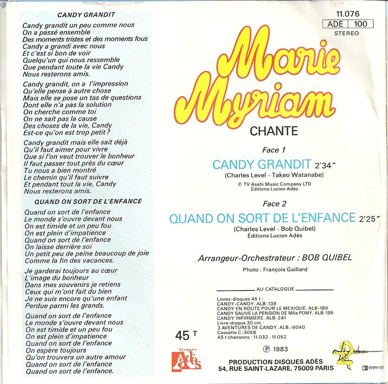 disque dessin anime candy marie myriam candy grandit