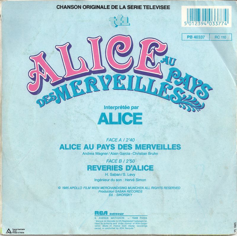 disque dessin anime alice au pays des merveilles chanson originale de la serie televisee alice au pays des merveilles